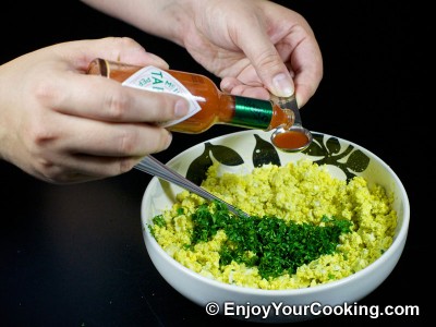 Add tobasco sauce (use more if you like eggs more spicy, or less otherwise):