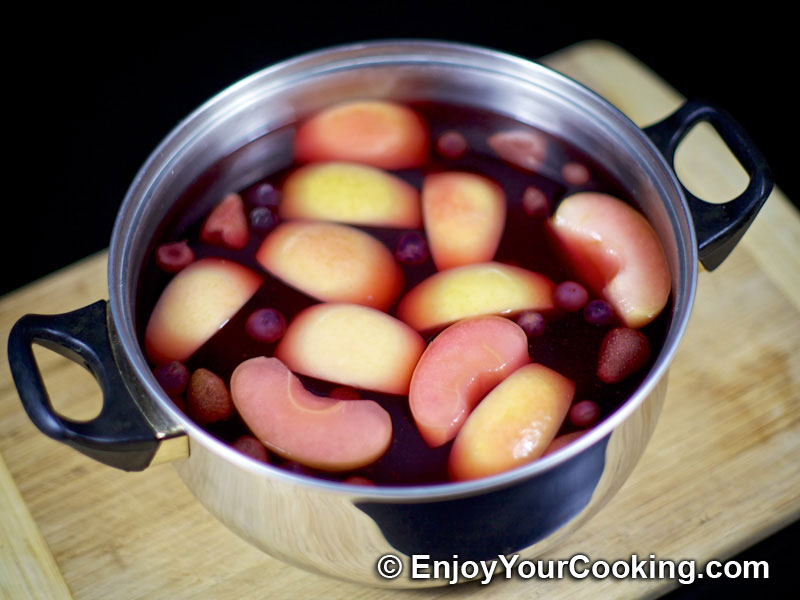 Fruit and berry kompot taste great warm, or cooled down to room temperature, or iced, whatever you prefer more. Fruits from the kompot taste great too, you can serve them with or without kompot.
