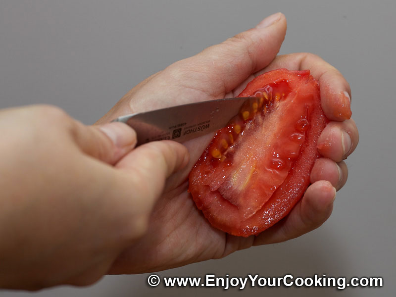 Blanching and deseeding tomatoes may seem like a hassle considering big choice of canned already blanched and deseeded tomatoes in a nearby grocery shop.