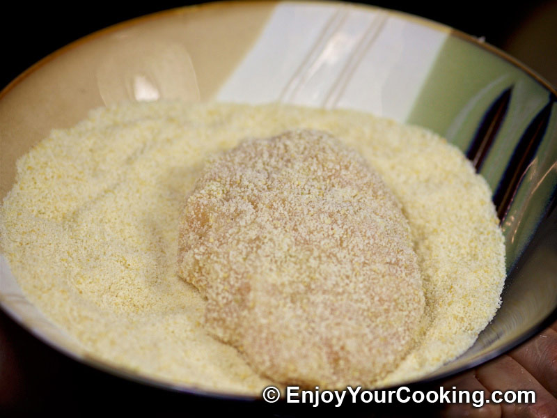 Warm up a skillet with oil. Pour breadcrumbs to a bowl. Working in batches, scoop minced meat mix with a spoon, form a patty: