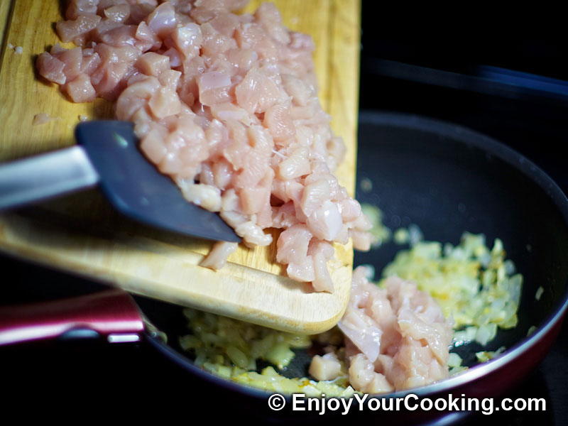 I used fresh spinach, but frozen will work good too, just thaw it before cooking and drain liquid before mixing with cooked chicken. Tvorog (fresh cow cheese) can be replaced with ricotta of the same weight as well.