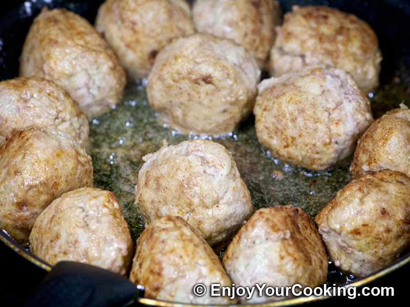 Move to a warmed up skillet and repeat with remaining meat mixture. Fry all meatballs from all sides evenly: