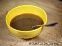 Let’s prepare glaze: for that mix half cup of pineapple juice, half cup of brown sugar and 2 teaspoons of mustard powder: