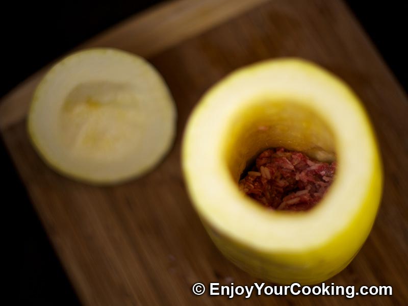 My mom usually cooked big zucchini like this: stiffing it with ground beef and rice mince.