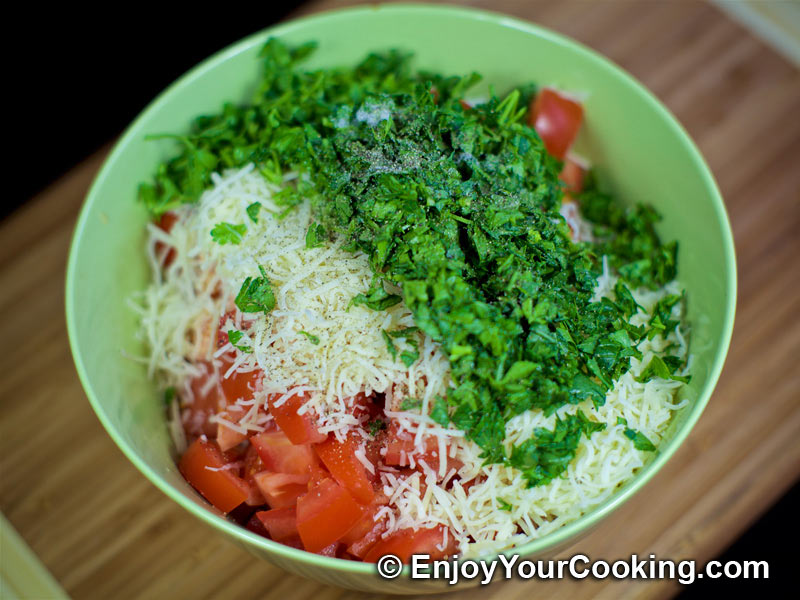 Pour mushroom and onion mix into the bowl as well; let both chicken and mushrooms cool down till room temperature before proceeding any further: