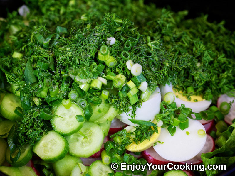 Another spring-envy salad, probably not as light as one would want, mostly because of mayo. But in this one I wouldn’t suggest to replacing mayo with sour cream or yoghurt.