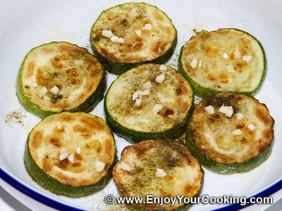 You will get a layer of fried zucchinis seasoned with oregano, salt and garlic, just like the following: