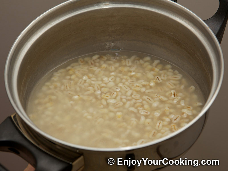This soup doesn’t include any meat, it is based on mushrooms and have vegetables (carrot, parsley and celery roots, potato) as well as pearl barley.