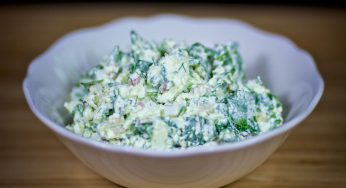 Yet another one chicken salad to be added to my list of recipes: tender chicken meat, boiled eggs, tasty cucumbers…
