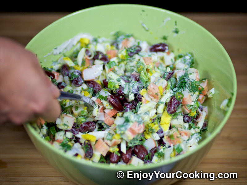 Need some beans in your life? Try this quick salad. Unusual combination of crab stick, beans, eggs and greens, but…